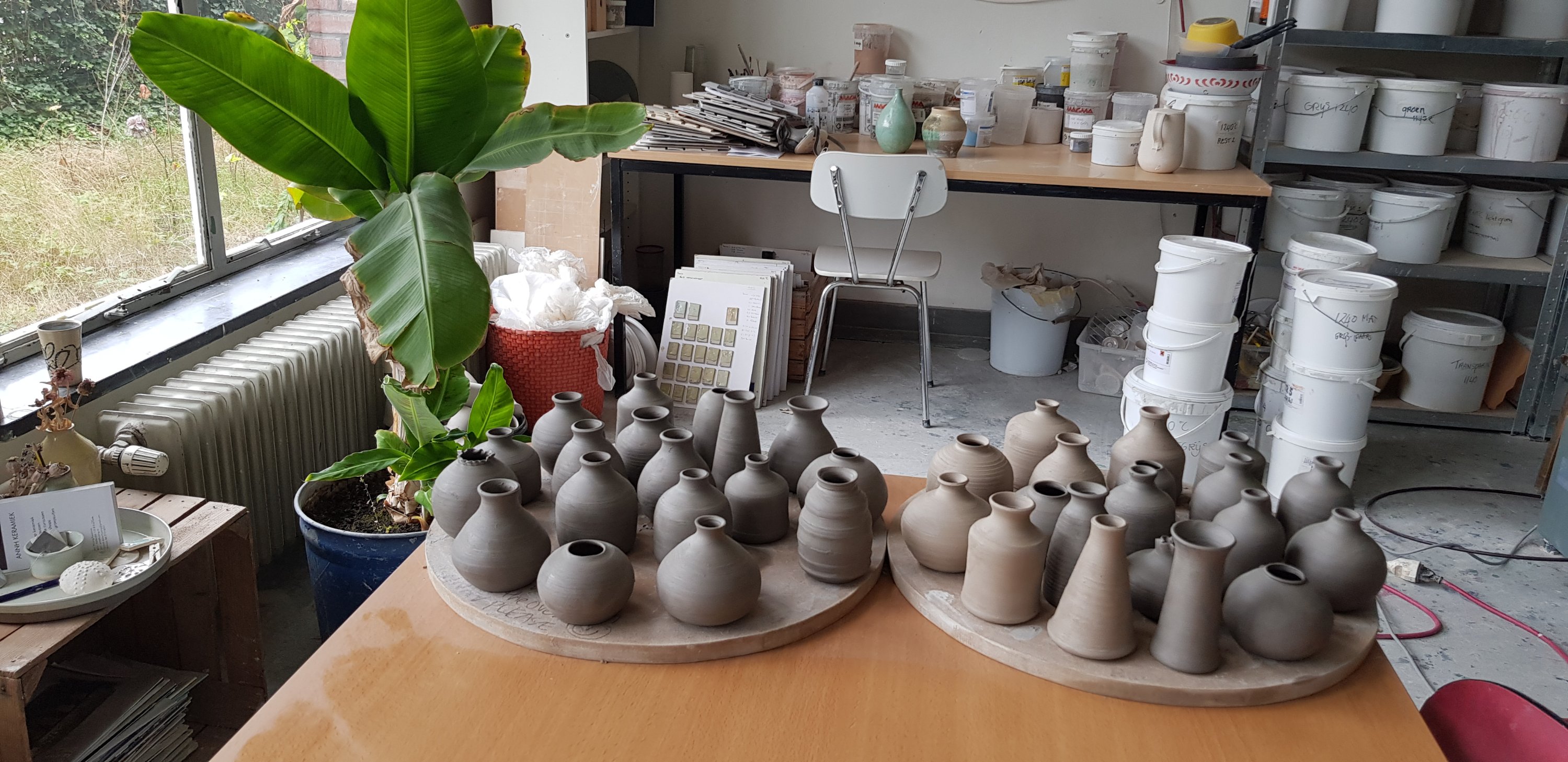 De vakantie zit er op. Nog een groep vaasjes gedraaid voor de laatste markt van het seizoen: